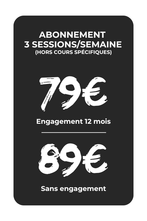Nos formules s’adaptent à votre pratique : CrossFit, Hyrox, préparation physique, coaching personnalisé… En abonnement mensuel, en pack ou à la séance, vous choisissez le rythme et le niveau d’accompagnement qui vous conviennent.